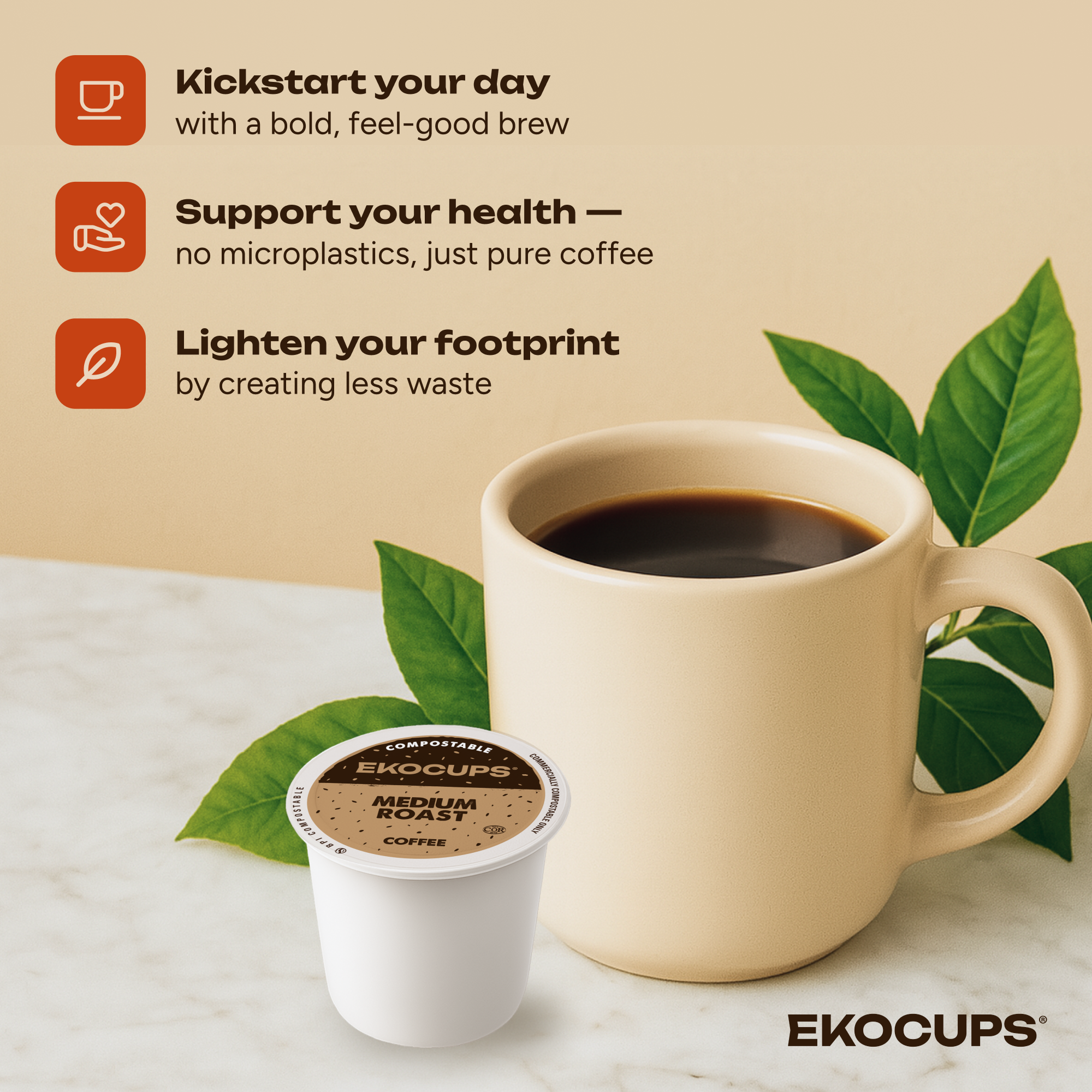 Compostable pods, like EKOCUPS, go back to the earth, helping the planet instead of harming it.